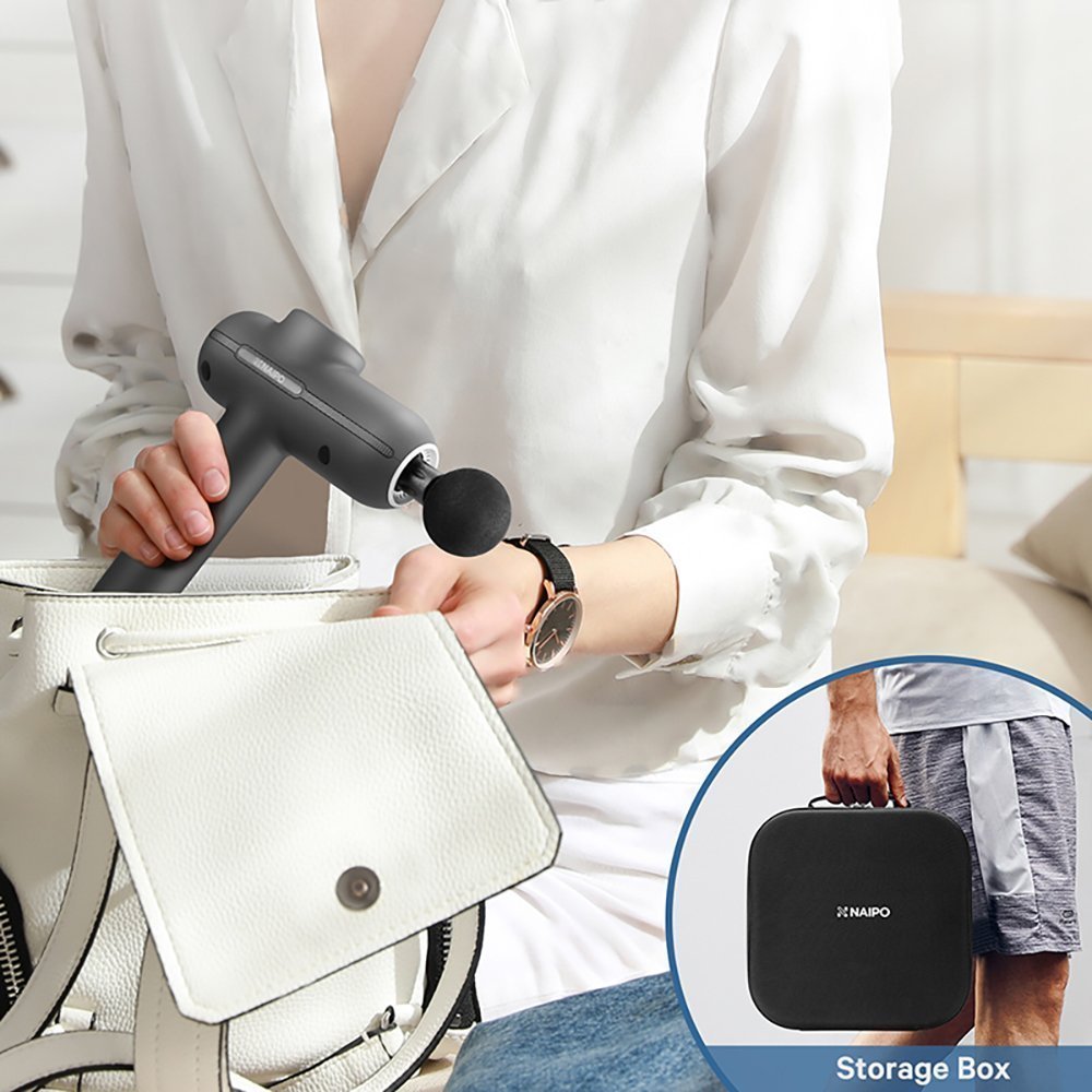 -Ελαφρύς σχεδιασμός: Το καινούργιο πιστόλι μασάζ Naipo είναι 10% ελαφρύτερο από το προηγούμενο, με καθαρό βάρος γύρω στα 800-900 γραμμάρια. Είναι κατάλληλο τόσο για άντρες, όσο και για γυναίκες, ενώ η αντιολισθητική λαβή του εξασφαλίζει ασφαλή χρήση ακόμα και όταν ιδρώνετε μετά την άθληση.