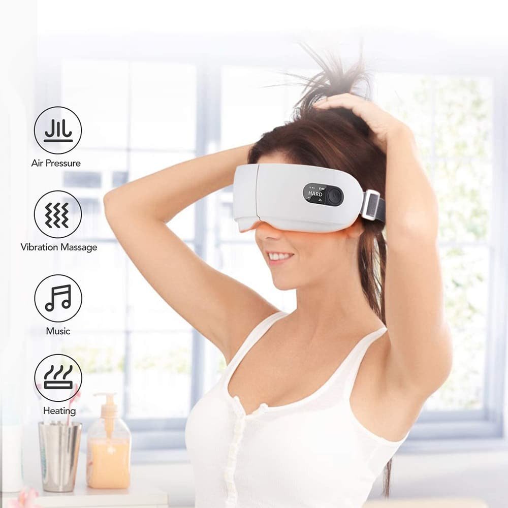 Three Modes to Relieve Eye Fatigue: Sleeping mode, Med mode and Hard mode. Each mode has a custom air pressure, vibration, heat, and music function. These are combined in order to create the best experience for you.
