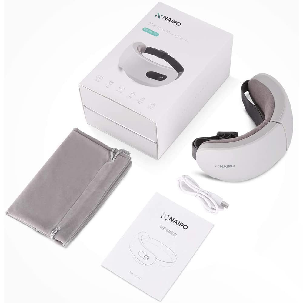 Portable & Rechargeable: The eye massager is 180° foldable, making it small enough to carry in your bag. The elastic strap is adjustable to fit most sizes. The Naipo Eye Massager includes a built-in 1500mAh rechargeable battery. It is easy to charge with our USB charging cable.