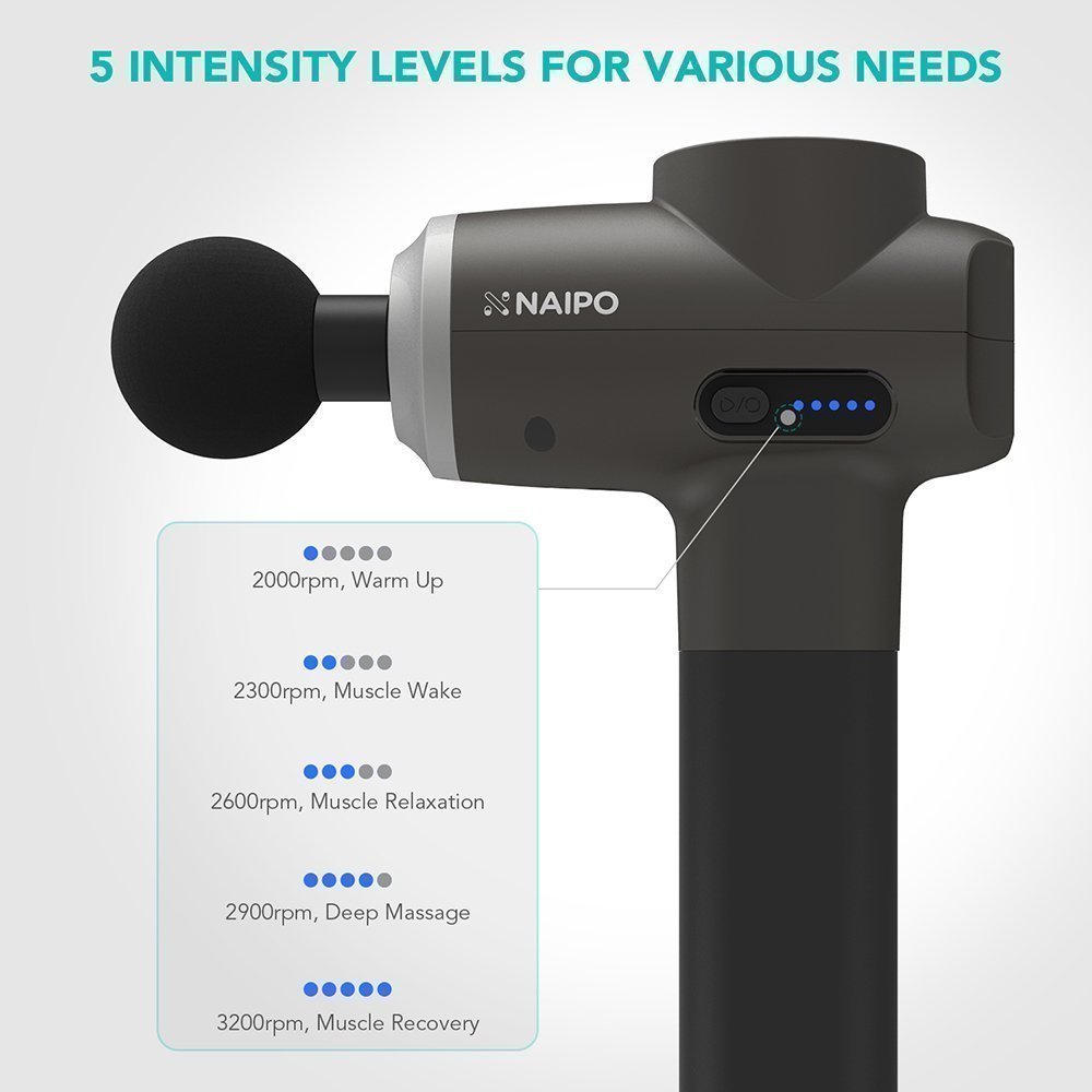 - 5 intensity levels for various massage needs to help relieve muscle soreness and stiffness.