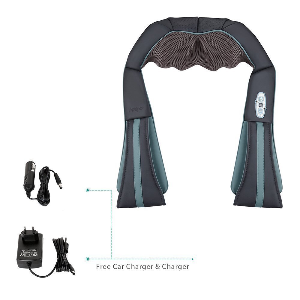 Cordless and Rechargeable. The shiatsu shoulder massager can be powered through the built-in rechargeable lithium-ion battery, which offers sufficient power to sustain a 2.5-hour cordless massage (charging time needed:≈2 hours). Use this massager anywhere and anytime.